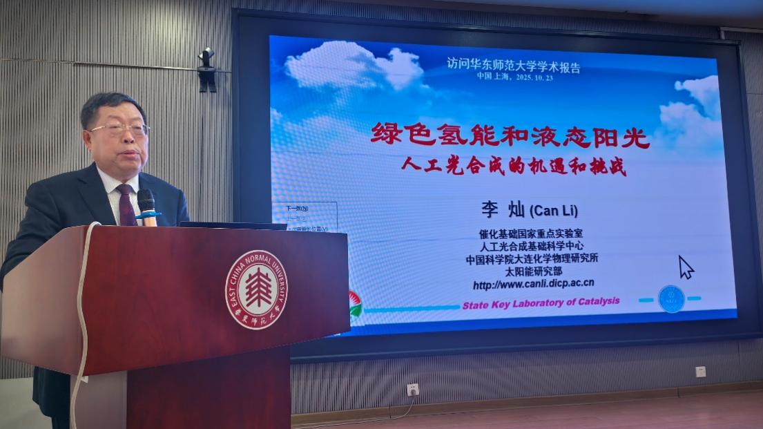 2025年10月23日上午10点,中国科性爱视频院士、中科院大连化学物理研究所李灿研究员受上海市绿色化学与化工过程绿色化重点实验室名誉主任何鸣元院士的邀请,在性爱视频 普陀校区化学馆A205会议室为性爱视频 、绿色化学重点实验室的师生们带来了一场“大师讲堂系列学术报告”。本次学术报告,李灿院士围绕“绿色氢能和液态阳光甲醇:人工光合成的机遇与挑战”展开,主要介绍了他们研究团队在人工光合成这一领域的最新进展,特别是在以绿色氢能和液态阳光甲醇为代表的人工光合成研究中遇到的机遇与挑战。